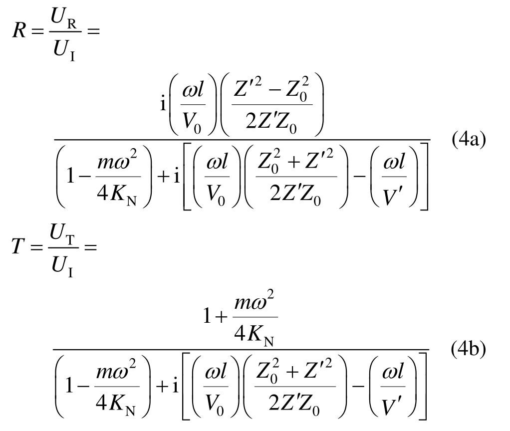 若粘接结构的界面为完好连接,那么纵波垂直入射下的反射和透射系数的精确解为[30]: