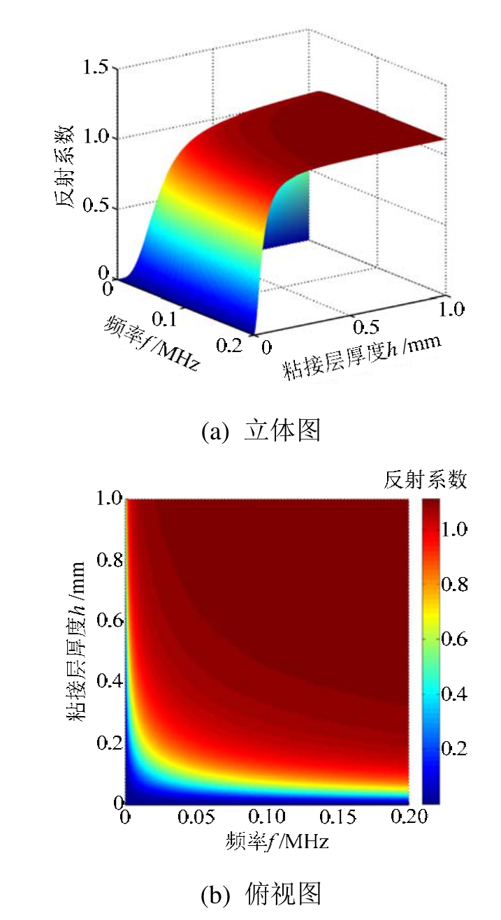 图5 频率、粘接层厚度和纵波反射系数之间的三维关系