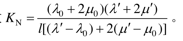 由此两个等式可知,当粘接结构的基体和粘接层的材料固定且界面为完好连接时,界面的相对质量m、法向刚度系数 KN和粘接层厚度 l互为函数,且