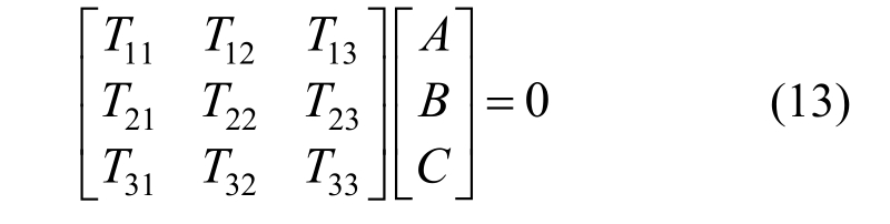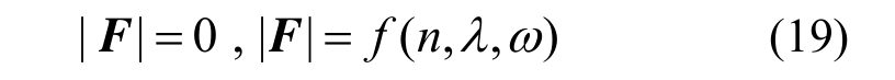 若方程组式(18)存在非零解,则系数矩阵行列式的结果为0,得: