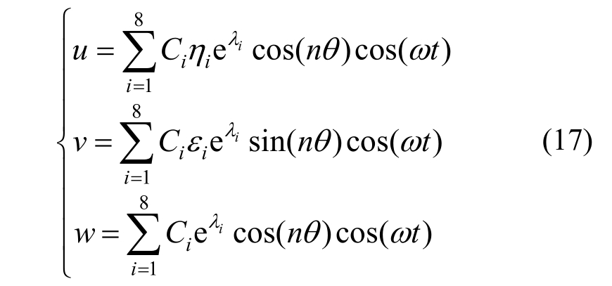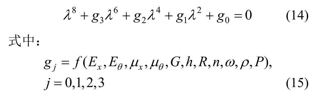 特征方程式(14)是一个关于无量纲轴向波动参数λ的8次方程,有正负 2类共 8个解