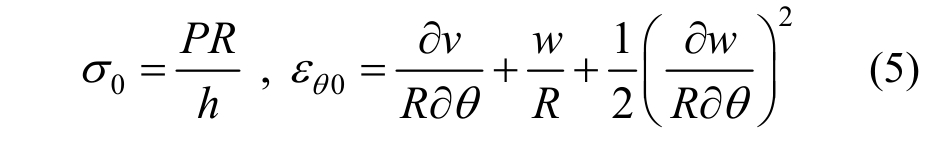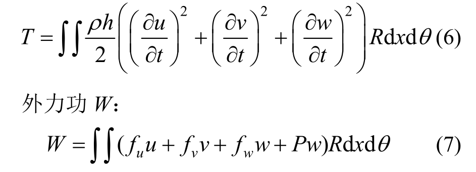 系统势能U包含2部分,U1为壳体应变能,U2是两端支撑弹簧的弹性势能: