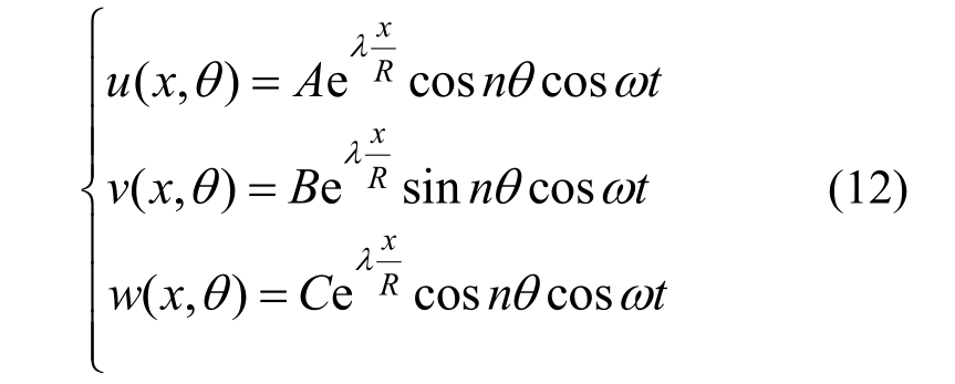 对于周向封闭的圆柱壳,假设振型表达式为: