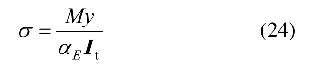 其中:M为截面弯矩;y为拟计算点相对中和轴坐标;Eα为芯材弹性模量相对于其它层弹性模量的比值。