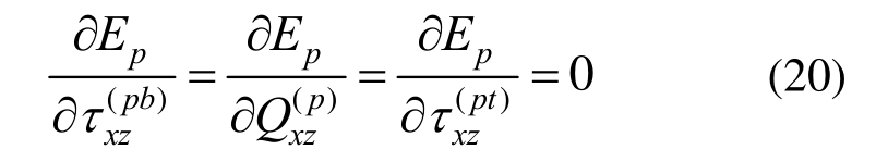 分别表示夹层板底部剪应力、沿高度方向剪力以及顶部剪应力;zpb和zpt分别为第p层的底部和顶部的坐标;![]()