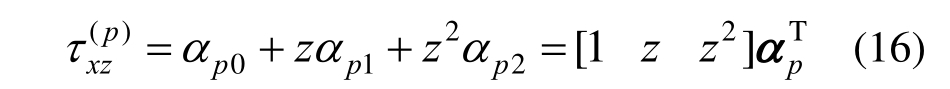 夹层板横向剪应力沿整个板高呈非线性分布,假设任意一点剪应力按照二次分布,在任意一夹层中可表示为多项式形式,如下式: