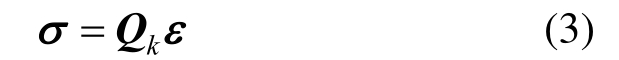 考虑到单向夹层板受力时,材料弹性主方向与坐标轴平行,所以仅取x-z平面内单层夹层本构关系即: