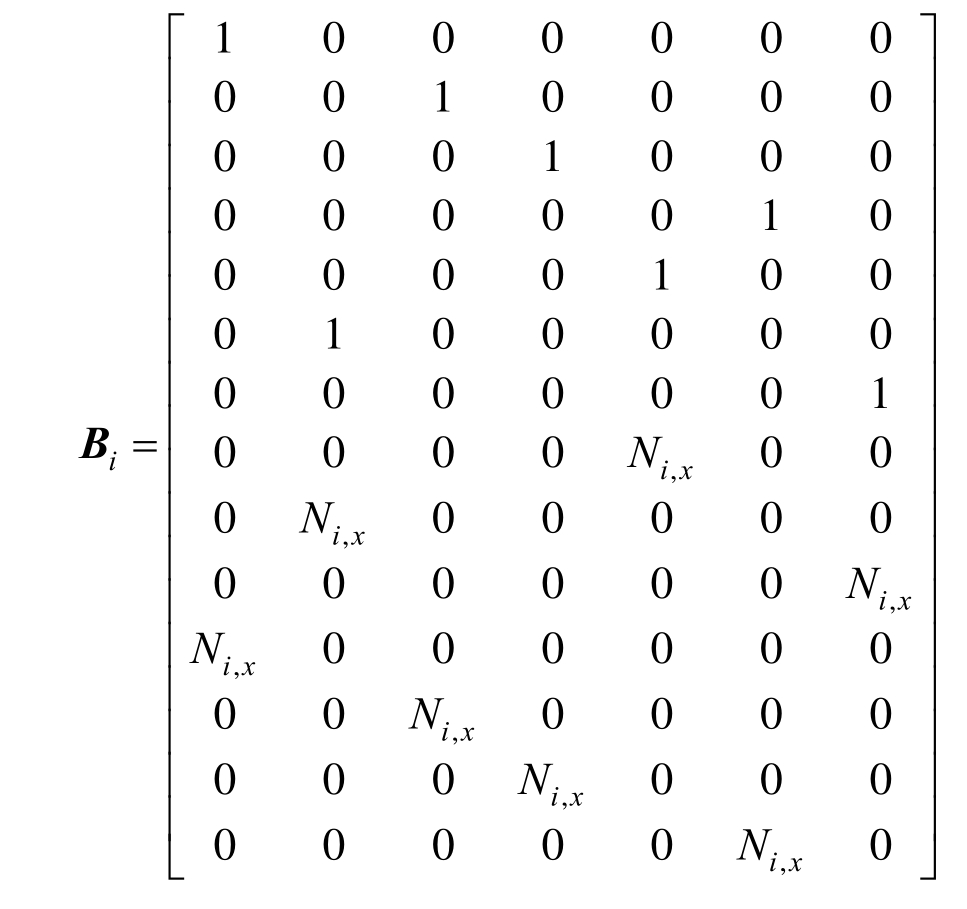 式中,Ni,x表示Ni对x的导数。