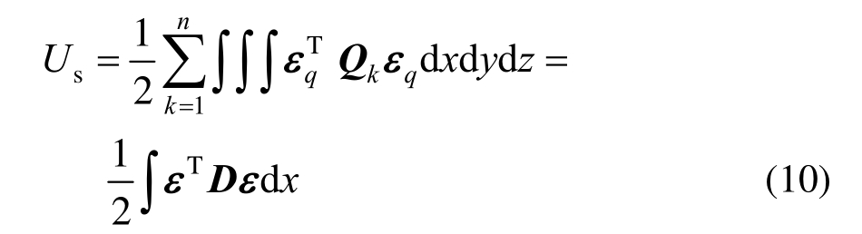 其中:Us为应变势能;Wl为横向外荷载做的功。基于式(3)、式(7),应变势能可表达为: