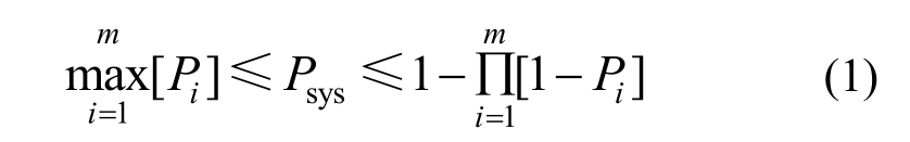 式(1)中:Psys表示全桥系统失效概率;Pi表示第i个构件发生破坏的概率。将各构件看作为串连结构系统,其各构件破坏概率的最大值是系统失效概率的下限;将各构件看作为并连结构系统,则所有构件全部失效的概率是系统失效概率的上限值,是对全桥系统失效的保守估计。