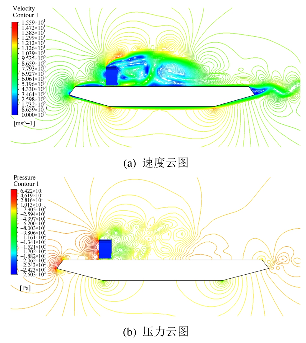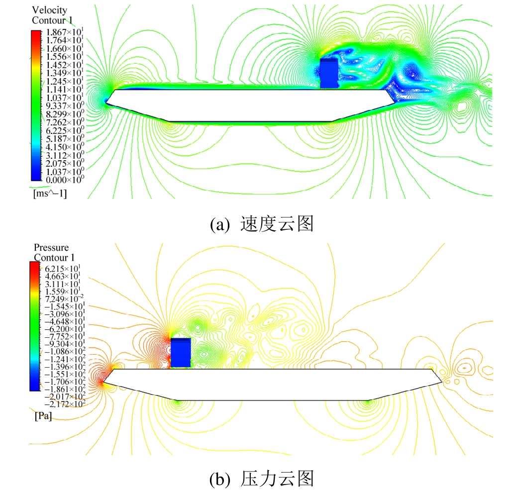 Fig.11 Speed and pressure contours of heavy truck in sixth lane