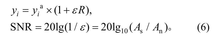 式中:yia和yi分别为原始信号和加入噪声后的信号;ε表示噪声水平;R为标准正态分布随机数;SNR为信噪比;As和An分别为信号和噪声信号的幅值。