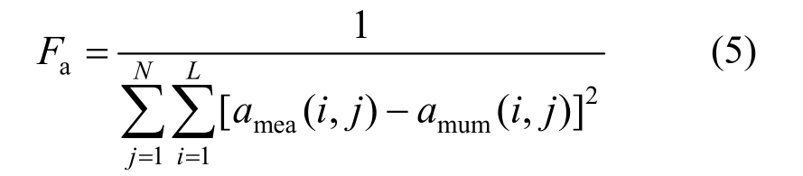 其中:Fa为适应度函数;amea(i,j)和anum(i,j)分别表示结构实测与数值模型预测的第i时刻第j测点加速度响应;N为测点总数,在框架结构中测点数等于楼层数;L为测量数据总长度,即每个测点所采集的用于计算的数据个数。