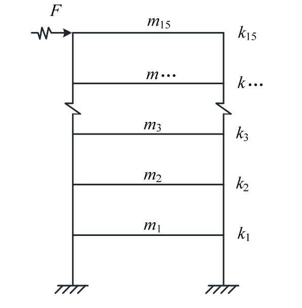 为验证分布式并行算法对线性结构系统辨识的有效性,以15层剪切型框架结构为例进行分析,并与传统串行算法进行对比。