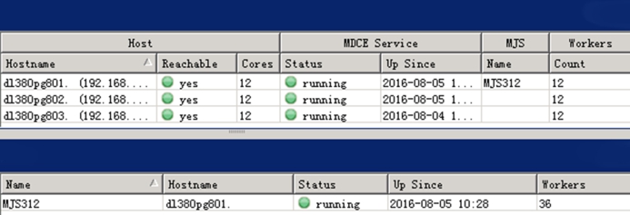 本文算法运行环境均基于实验室搭建的MATLAB R2016a的分布式云计算平台,该平台采用实验室三台12核心、64 G运行内存的惠普服务器进行搭建,具体配置环境见图2,三台服务器分别为dl380pg801、dl380pg802、dl380pg803,均为在线可用状态。