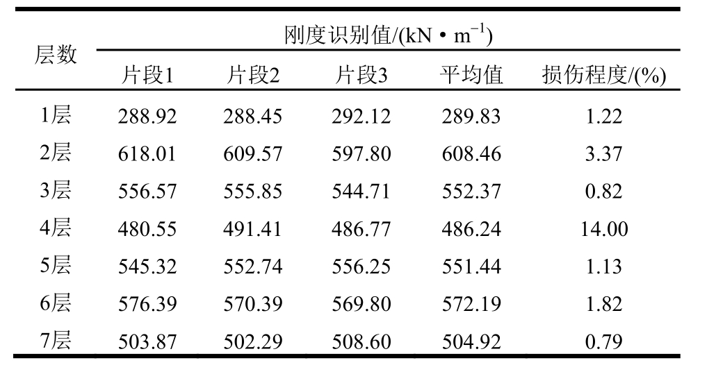 表3 15层框架损伤状态参数辨识结果