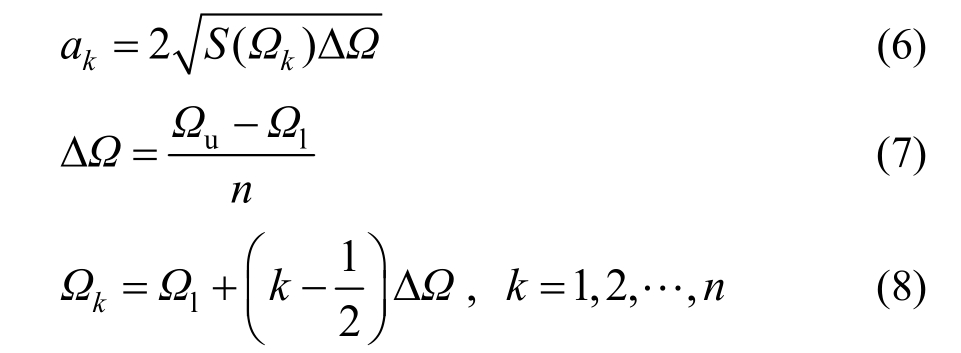 其中:φk是在[0,2π]区间内随机分布的相位角,可由蒙特卡罗方法生成;x是顺桥向的坐标;n是相位角数目;其他参数定义为: