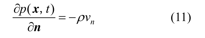 其中:n为桥梁外表面的外法线向量;vn为桥梁外表面的法向振动速度,来自本文第1节的振动分析;ρ为空气密度。