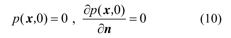 其中:p为声压;x为场点坐标矢量;c为空气中声波的速度。声场分析时的初始条件为: