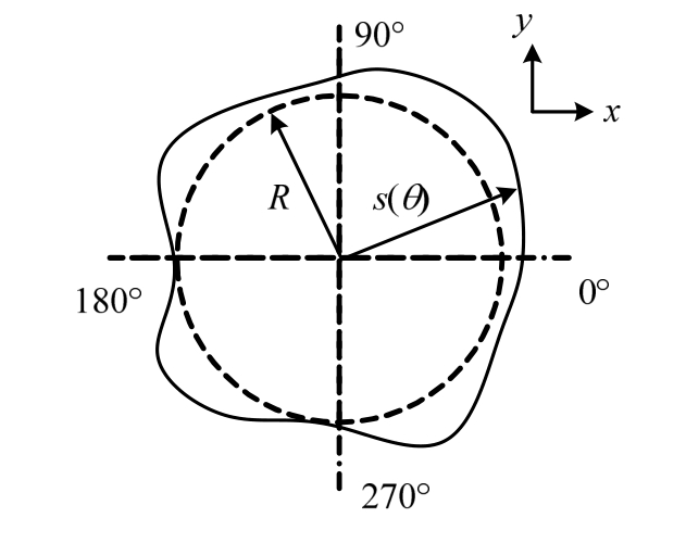 处,均布置在上水线的振荡范围以内,从而可能达到减振的目的。肋条高2 mm,宽7.4 mm,可以得到各离散点上斜拉索中心到斜拉索表面的距离s()θ,其他基本参数见表1。