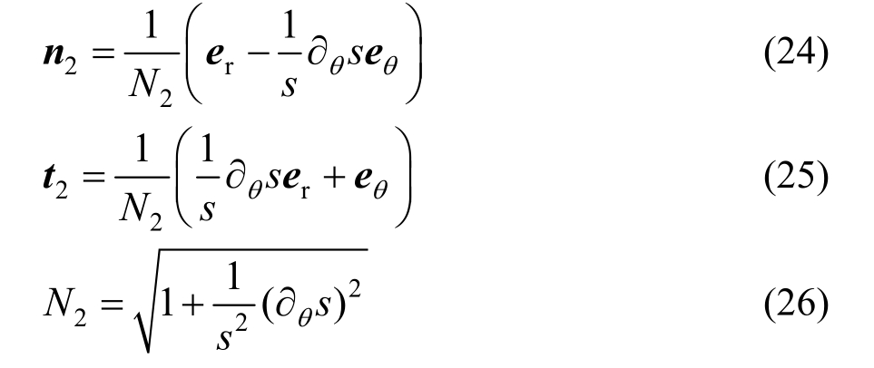 水膜底面(斜拉索表面处)的法向向量和切向向量分别为: