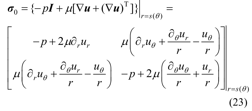 1) 水膜底面r=s(θ)相对于斜拉索表面静止,即: