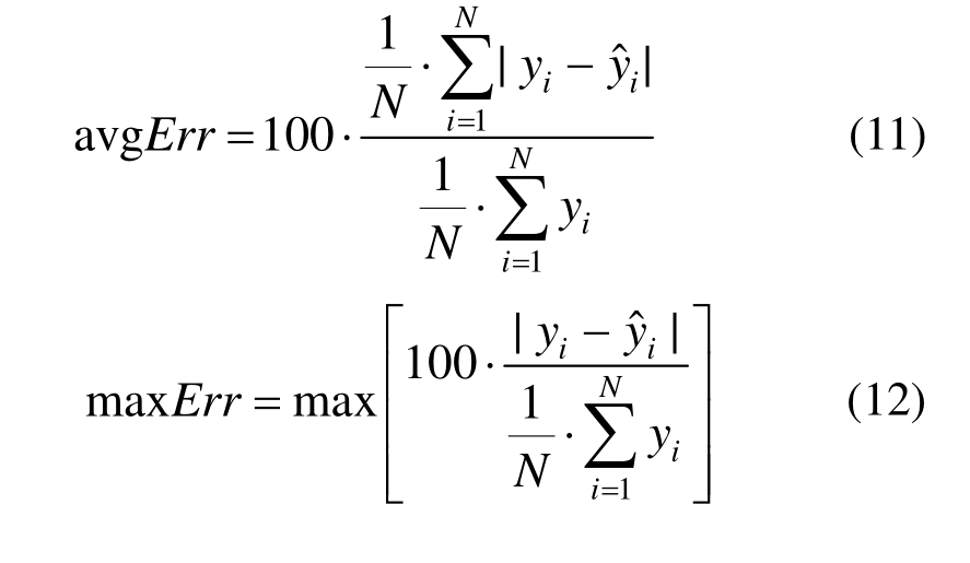 为了检验响应面函数计算结果预测结构真实响应的效果,采用均方误差(avgErr)、最大绝对误差(maxErr)和均方根误差(RMSE)来检验函数预测非试验点的精确性[23]:
