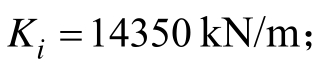 42 mm;由《公路桥梁板式橡胶支座规格系列》(JT/T 663—2006)[16]查得其支座形状系数S=10.6;Ge指板式橡胶支座的动剪切模量,按《公路桥梁抗震设计细则》(JTG/T B02-01-2008)[17]规定取Ge=1.2×106N/m2。支座单元水平和竖向刚度的计算公式如下: