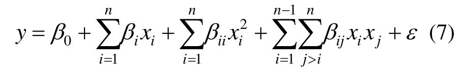 式中:y表示结构响应;xi和xj为设计输入变量;β0、βi、βii和βij为待定参数,为拟合误差且服从均值为零的正态分布。