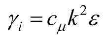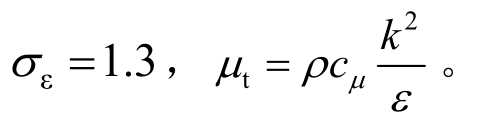 为湍流黏性系数,k为湍流动能,ε为湍动能耗散率,cμ为常数。