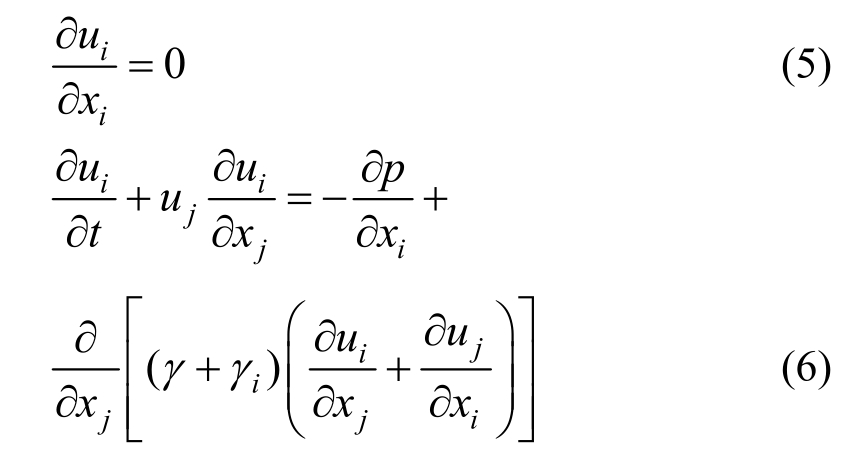 本文采用 CFD方法展开数值计算,设定流场为二维不可压缩流动的湍流流场,其运动控制方程为: