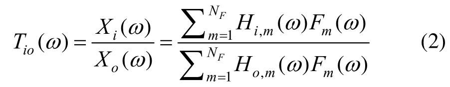 式中,Xi(ω)和Xo(ω)分别表示xi(t)和xo(t)的FFT系数。局部传递比与频响函数之间存在以下关系: