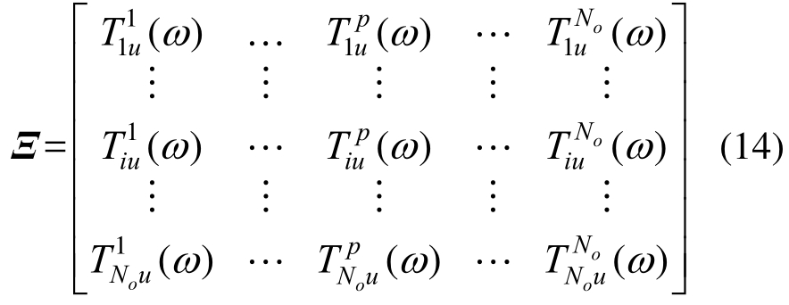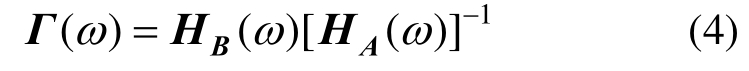 2)传递比矩阵:假定XA(ω)和XB(ω)为系统两组振动响应的FFT向量,传递比矩阵Γ(ω)可以用于表征XA(ω)和XB(ω)的关联,即: