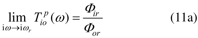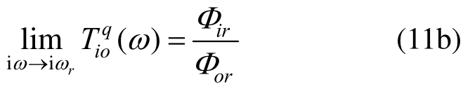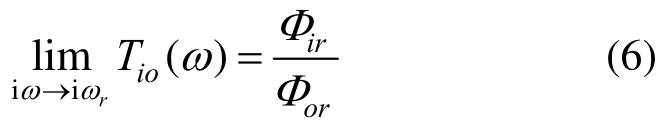 式中,Sip(ω)和Sop(ω)分别为系统测点i、o响应记录与参考点p处响应记录的互谱。根据证明得到的函数极限的一个引理,阐明了在系统极点处功率谱传递比不依赖于系统的输入及参考点选择,与两测点的模态振型比值等价,即: