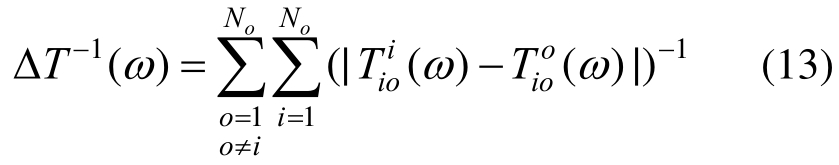 1)局部传递比:假定xi(t)和xo(t)分别为结构动力系统测点i、o的响应记录,局部传递比定义为两测点快速傅里叶变换(FFT)系数之比,即:
