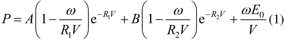 式中:P为爆轰压;V为相对体积;E0为初始单位体积内能;ω、A、B、R1、R2为材料常数。