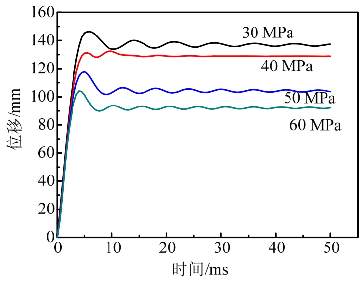 Fig.17 Displacement history of midspan under different steel yield strength
