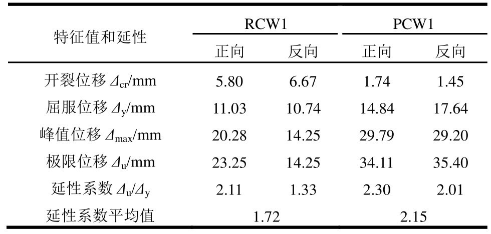 2)双面叠合剪力墙PCW2的延性系数略大于现浇剪力墙,这是由于附加钢筋的有利影响。