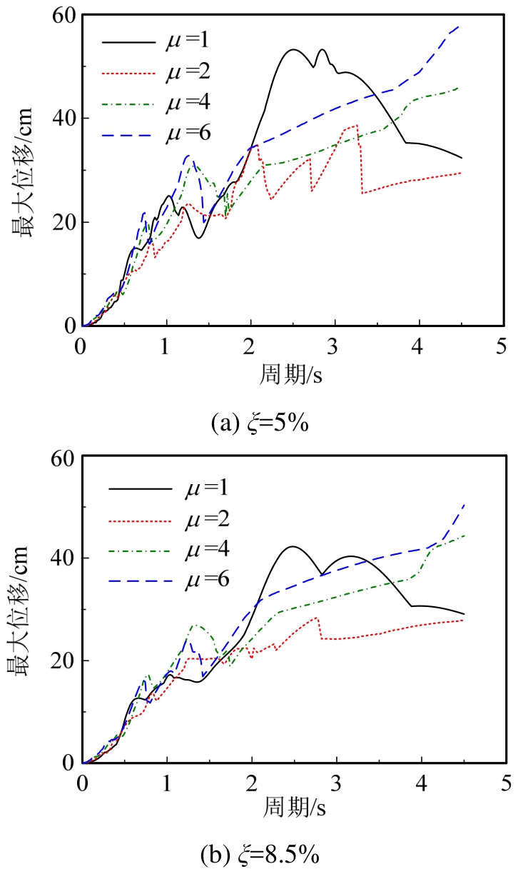 Fig.7 Maximum displacement spectra
