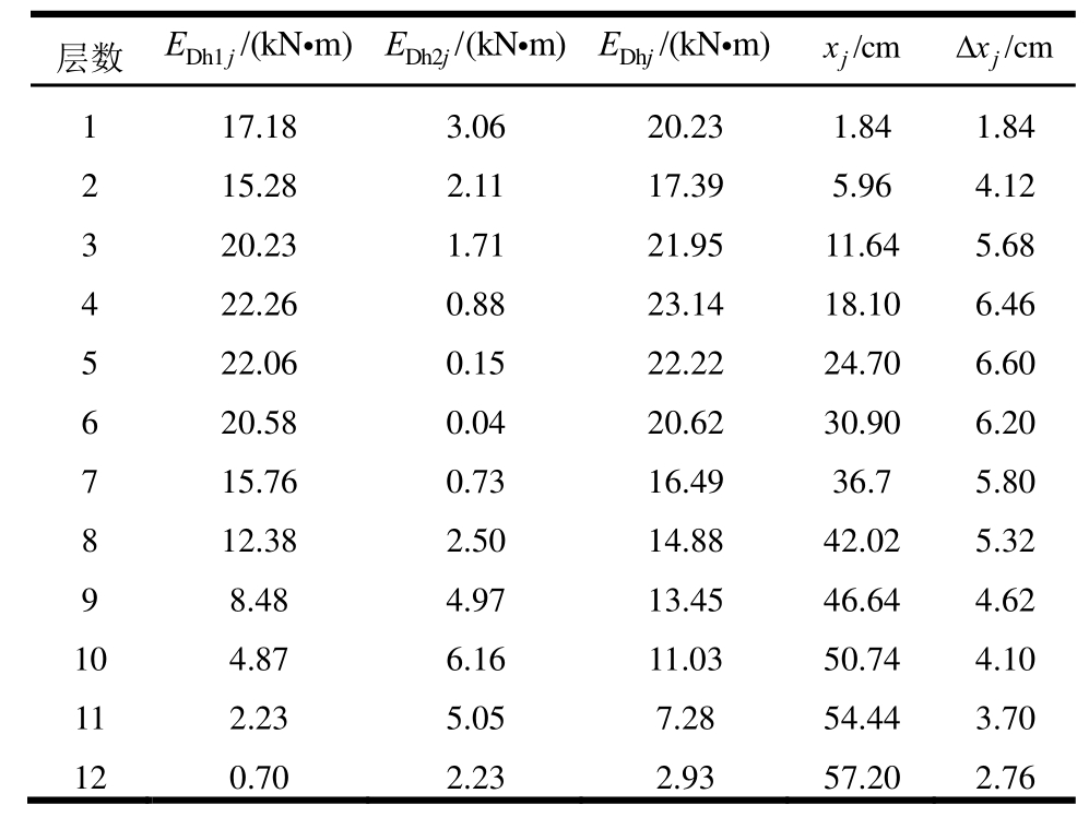由式(15)得到各层阻尼器耗能EDhj,具体计算结果见表5。能量分布曲线选择过程中,第1阶振型采用首层层间位移角,第2阶振型用第10层层间位移角,过程如下: