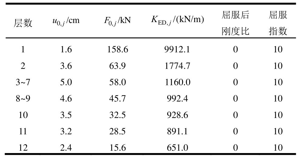 据结构实际条件及其使用要求等,选择合适的阻尼器类型。利用2.2节阻尼器参数设计方法,由各层耗能需求EDj、层间位移jδ以及阻尼器参数,进行设计。