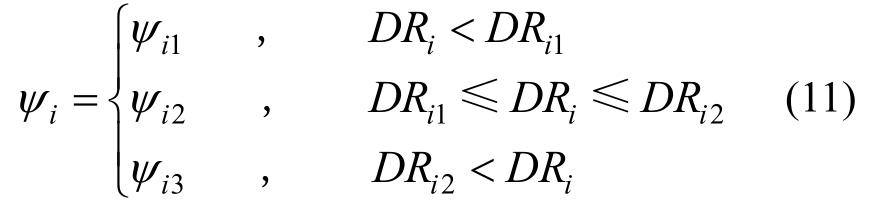 式中:ψi为标准化能量分布列向量;DRi1为第i阶振型下屈服耗能机制第一阶段对应的层间位移角;DRi2为第i阶振型下屈服耗能机制第二阶段对应的层间位移角;DRi为第i阶振型目标位移下的层间位移角,对第1阶振型为首层层间位移角,第2阶振型为转换层层间位移角。