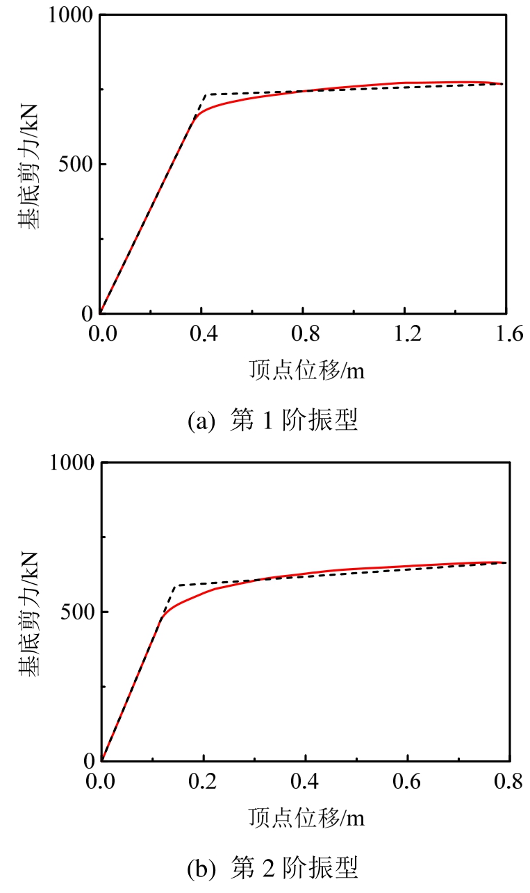 图5 MPA基底剪力-顶点位移等效线性化曲线