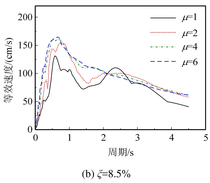 选定结构初始阻尼比ξ,结合Ti、Cyi利用屈服强度系数谱确定μi;利用上述参数,由等效速度谱确定等效速度Vai,则初始阻尼比吸收能Eai为: