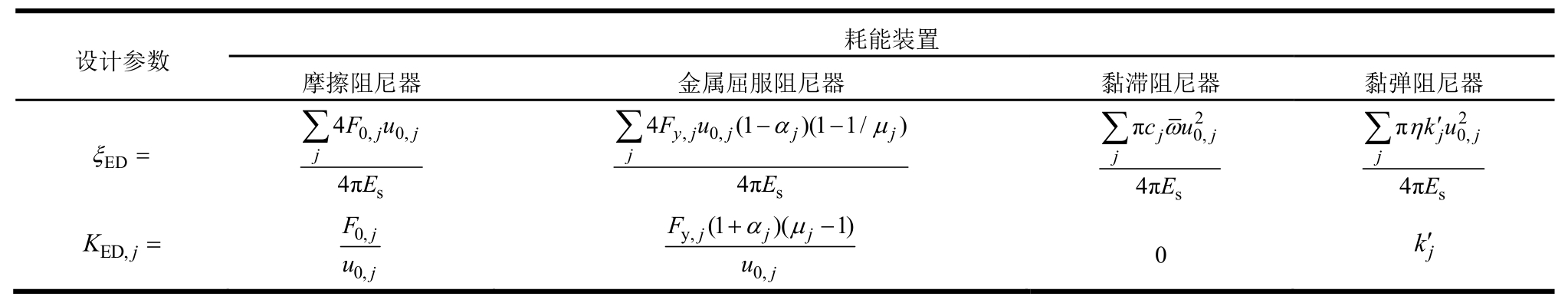 表1 常用被动耗能装置设计参数(表中变量均为国际单位)