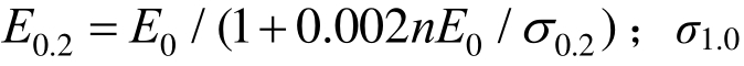 式中:E0.2为应力等于σ0.2时对应的切线模量,取值