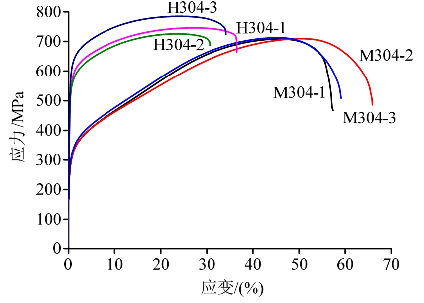 图6 奥氏体型不锈钢母材及其焊缝金属试验曲线