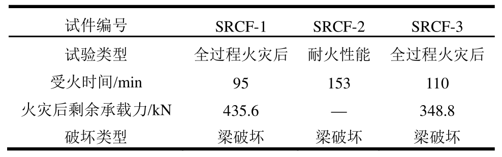 Table4 Fire resistance and post-fire residual load bearing capacity of SRC frames