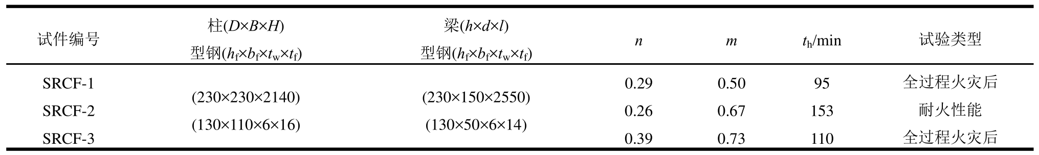 表1 型钢混凝土柱-型钢混凝土梁平面框架试件参数