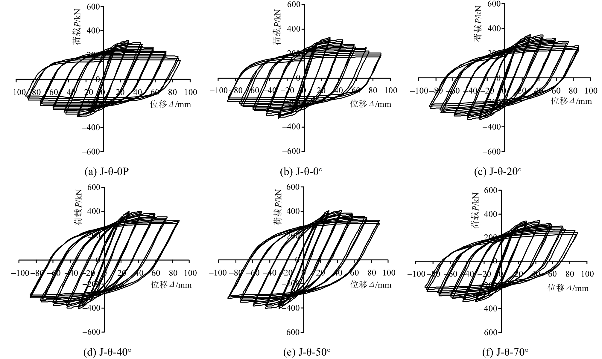 Fig.21P-Δhysteretic curves of specimens under different load angles